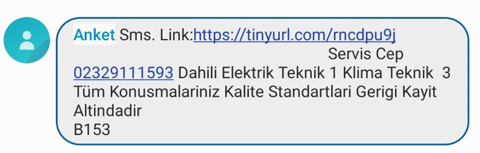 • Müşterileriniz ankete ulaşabilmek için kendilerine SMS ile iletilen link üzerinden ulaşabilirler.