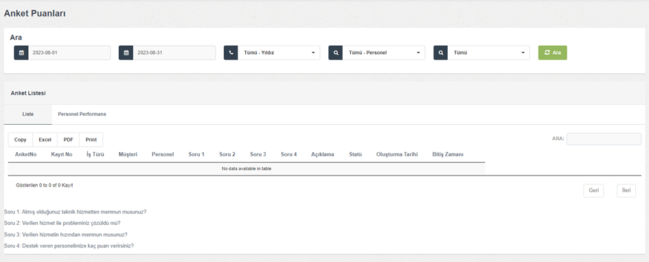 Müşterilerinize yapmış olduğunuz anketler sonrası geri dönüşlerini tek ekran üzerinden görüntüleyebilirsiniz.