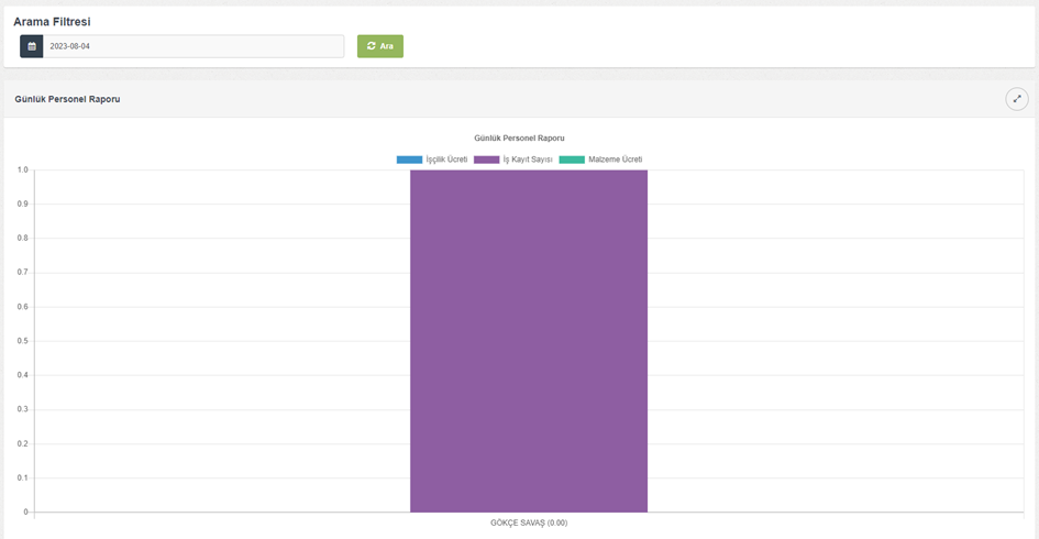 Günlük personellerin işçilik, malzeme ve kayıt sayısına göre ücret tutarlarını grafiksel olarak görüntüleyebilirsiniz.
